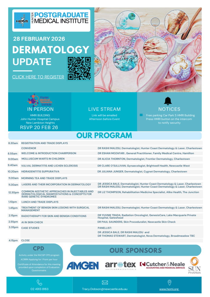 VENUE: Caves Theatre, HMRI Building, John Hunter Hospital Campus, New Lambton Heights